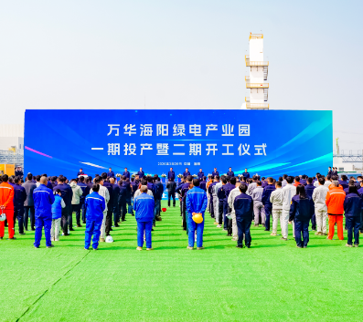 3月28日上午,萬(wàn)華海陽(yáng)綠電產(chǎn)業(yè)園舉行一期項(xiàng)目投產(chǎn)暨二期開(kāi)工儀式。